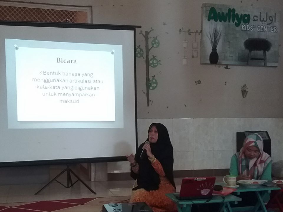 Nara sumber menyarankan parents berkomunikasi pada anak dengan menggunakan artikulasi yang jelas, simple, mudah dipahami, serta memberi kesempatan kepada anak sambil menuntunnya untuk dapat mengekspresikan keinginannya secara verbal (menggunakan bahasa verbal)