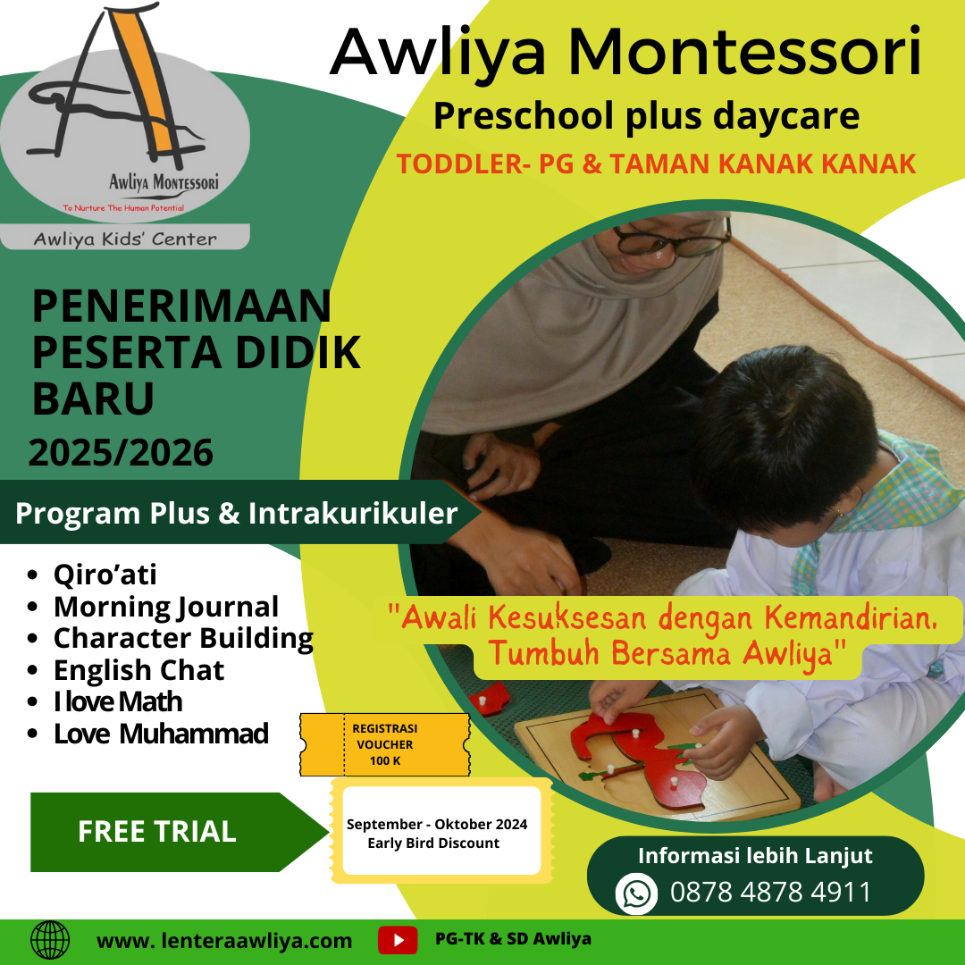 Musim Penerimaan Siswa Baru TK Awliya Montessori 2025/26